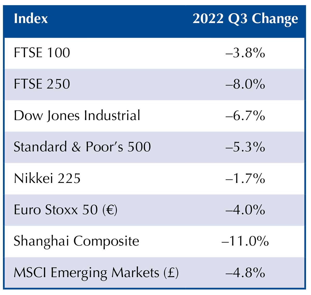 The third quarter of 2022 ended in tumult for UK investors. The third Chancellor of the quarter, Kwasi Kwarteng, produced a ‘mini-Budget’ on Friday 23 September that sent shock waves around the world throughout the following week. The Monday after the ‘mini-Budget’ – which the Chancellor insisted was not a Budget at all – the Bank of England and HM Treasury were both forced to issue statements designed to calm jittery markets.