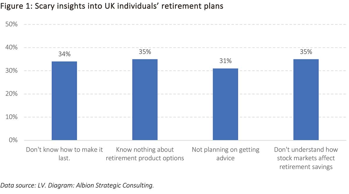 From time-to-time scary data surface about the state of retirement planning in the UK. Recently, LV – the insurance company – published the results of a survey of 4,000 people relating to how they intend or are handling their pension arrangements1. LV estimate that there are around 30 million pension holders in the UK. The results are a little startling, to say the least. Take a look at the chart below.