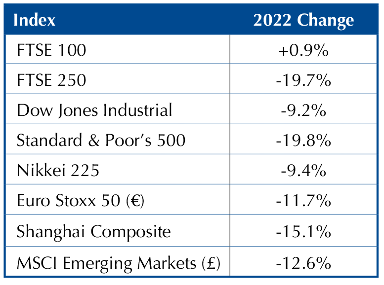 In 2022, most of the world’s major share indices had their worst year since 2008, but the UK’s FTSE 100 was a star performer.
