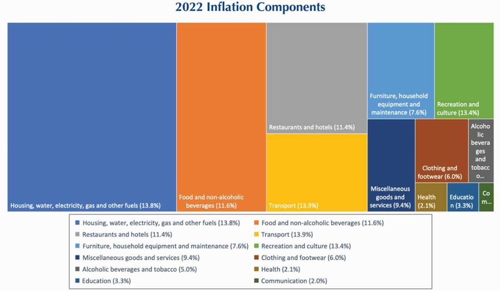 Annual inflation in 2022 was 10.5%, but not all components rose by double digits.