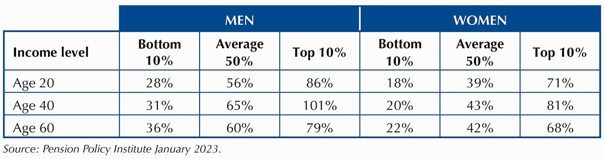 As shown in the table, women do better than men due to living longer, while the lower paid win over the higher paid because under the new state pension regime that has operated since 2016, pension accrual is at a flat rate, regardless of earnings.